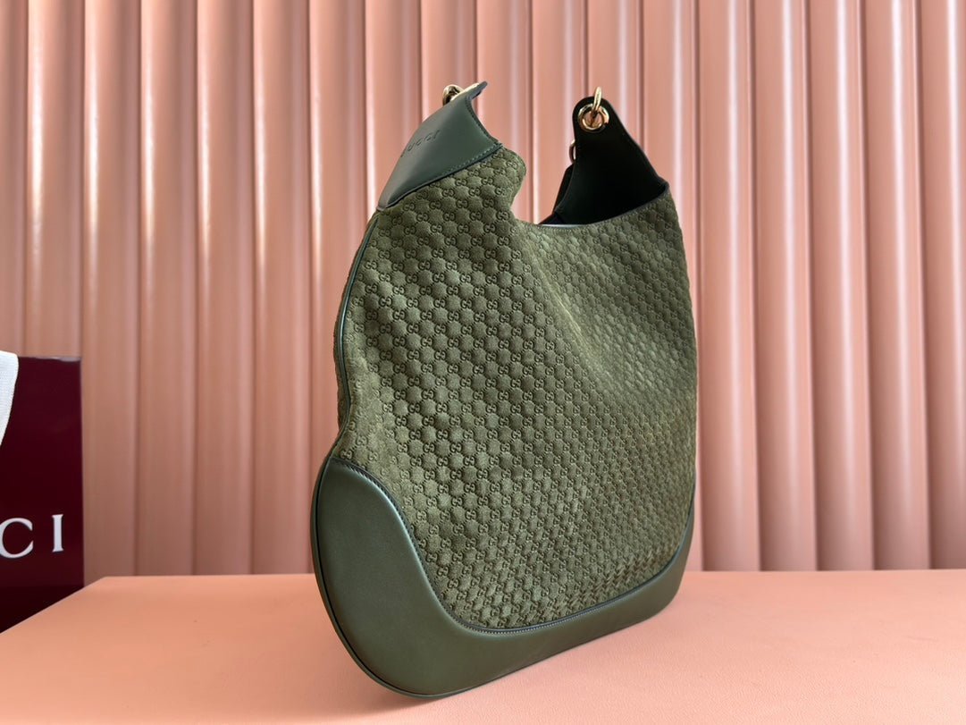 B LARGE SHOULDER BAG 49 IN ARMY GREEN GG EMBOSSED SUEDE